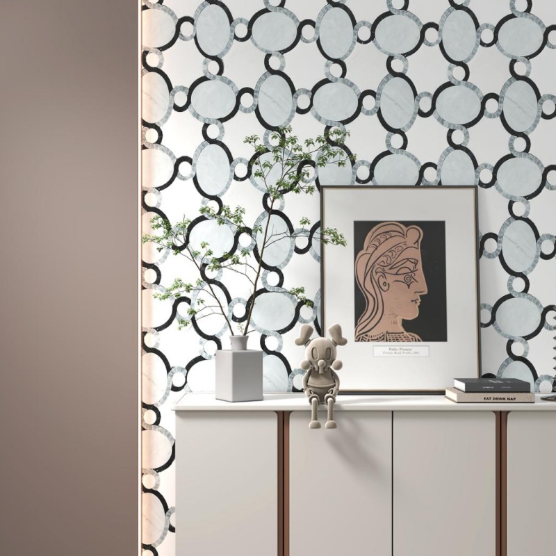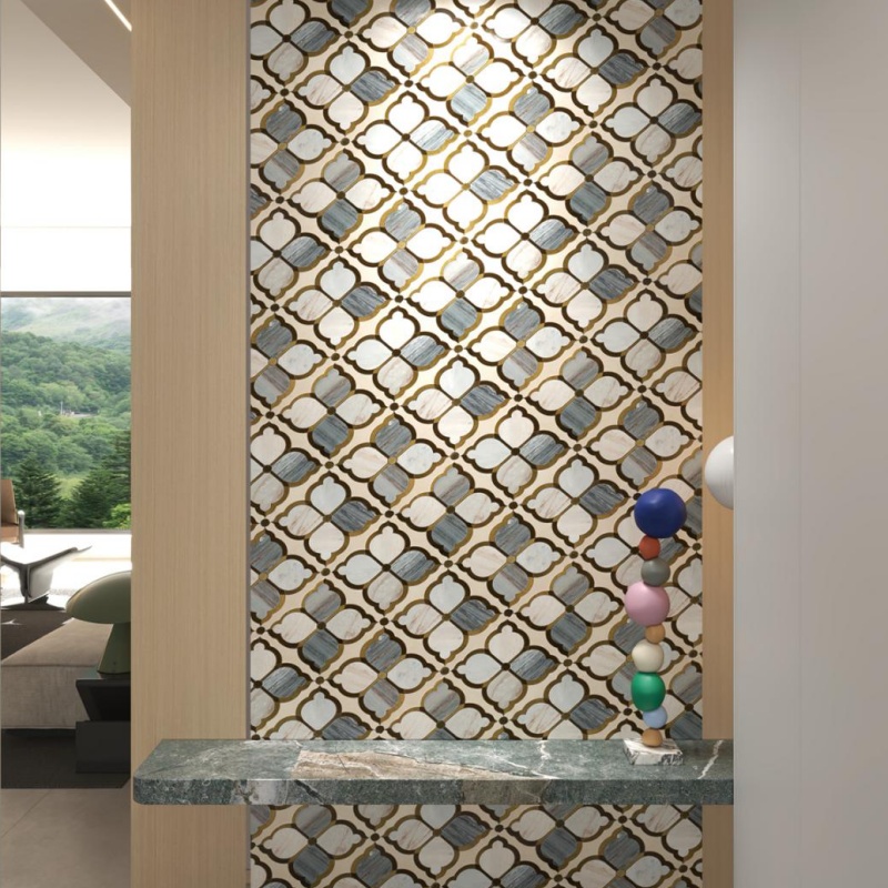Luxurious villa hotel lobby, kitchen and bathroom marble mosaics with simple natural marble mosaics and metal decorative strips