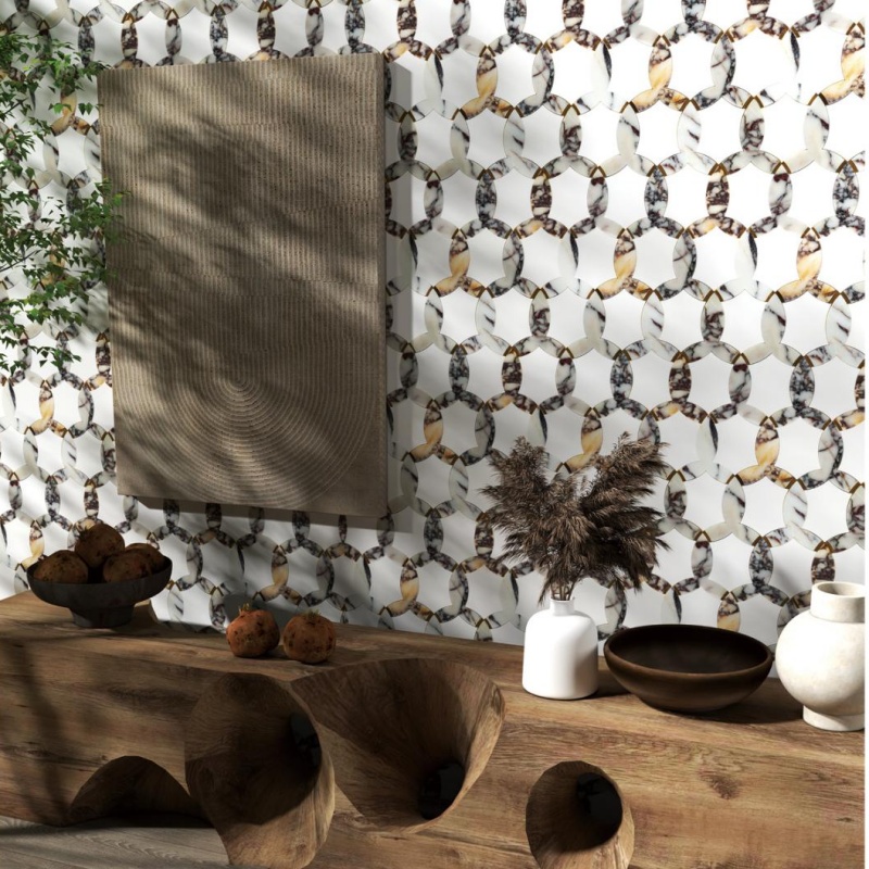 Grey flower-shaped pattern spliced natural marble Mosaic luxury villa hotel living room, hall, kitchen, bathroom background wall marble Mosaic