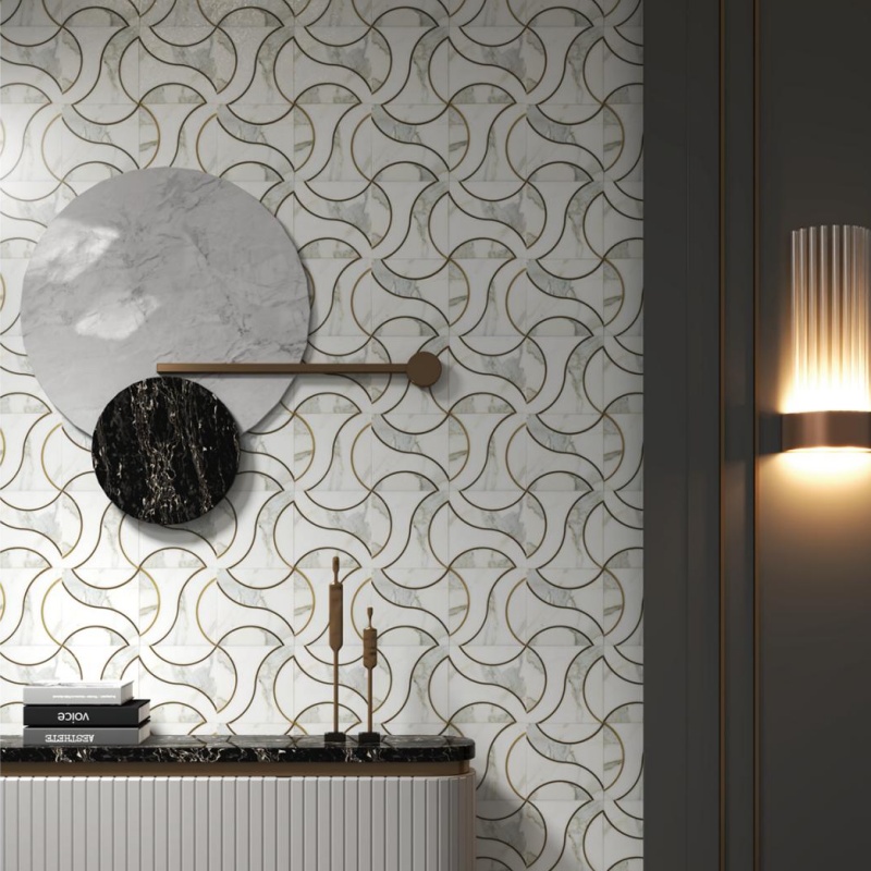 Simple natural marble Mosaic geometric patterns luxury villa hotel lobby, kitchen and bathroom marble mosaics
