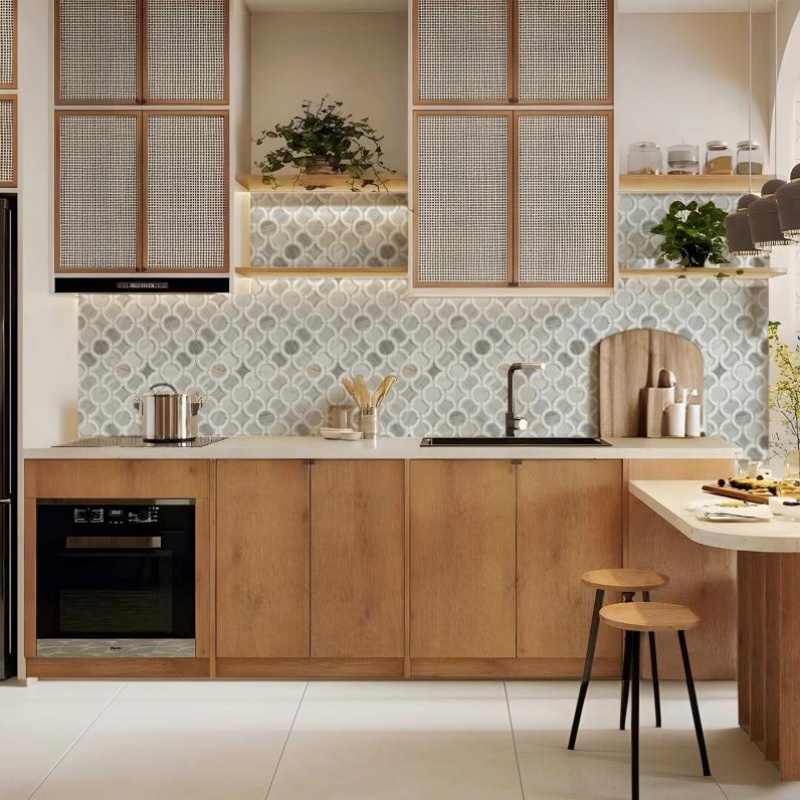 Simple villa kitchen and bathroom background wall and floor tiles with glass and natural marble Mosaic factory price