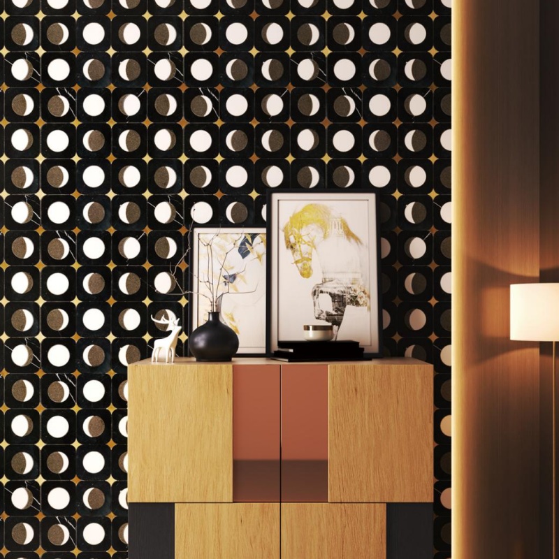 Black geometric pattern splicing natural marble Mosaic luxury villa hotel living room, hall, kitchen, bathroom background wall marble Mosaic floor