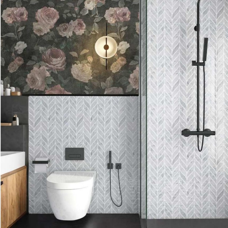 Carrara white and black natural marble Mosaic luxury villa kitchen and bathroom background wall and floor tiles Mosaic tiles