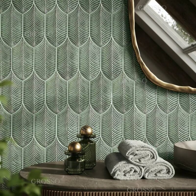 Modern Feather Mosaic Wall Tiles Crystal Glaze kitchen Bathroom Backsplash Kitchen