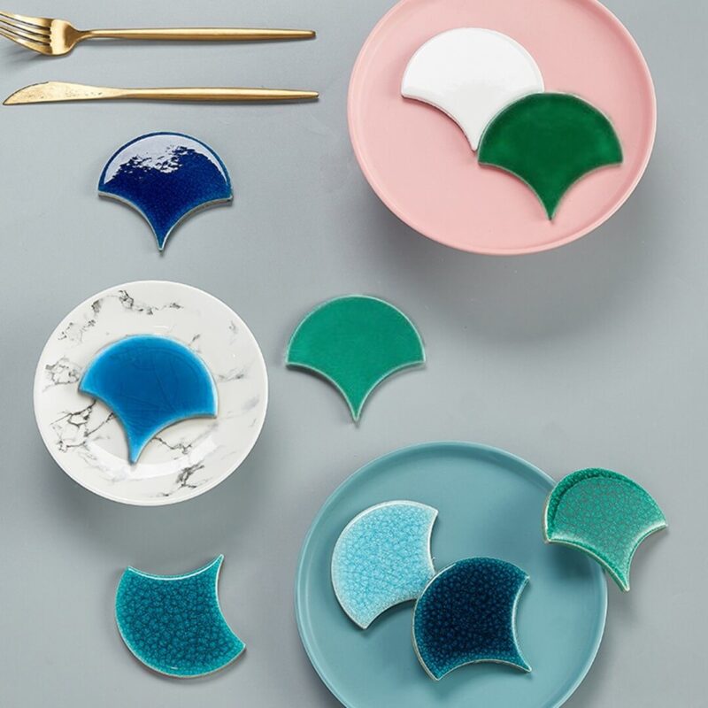 Fanshaped Crackle Mosaic Shaped Bathroom Backsplash Kitchen Ceramic Mosaic Wall Tiles