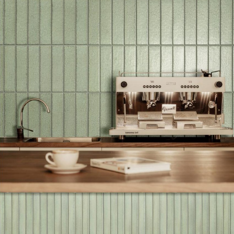 Fambe Green handcrafted ceramic tiles for indoor hotel kitchen and bathroom backsplash tiles