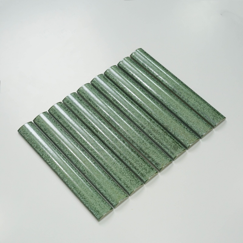 Long strip 3D Green Mosaic tile High-Precision Fambe indoor hotel villa bathroom background wall tiles Wholesale factory