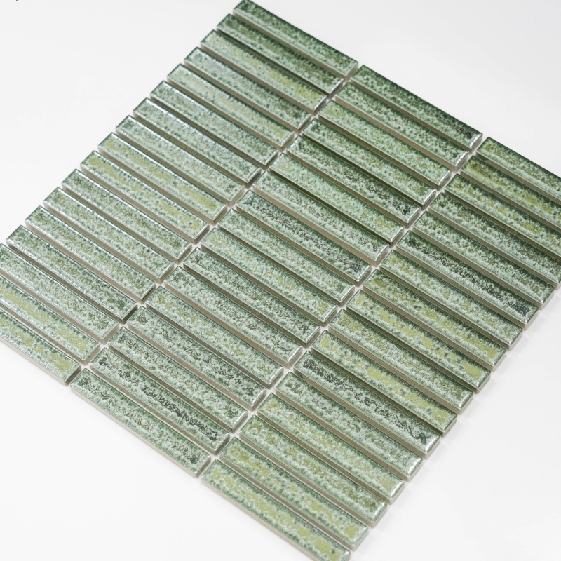 Long strip Green Mosaic tile High-Precision Fambe indoor hotel villa bathroom background wall tiles Wholesale factory