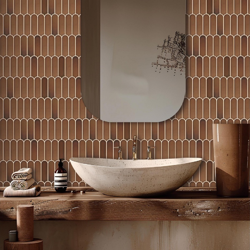 3D red gradient glazed long fan-shaped Mosaic tiles for hotel and villa backboard tiles, factory price