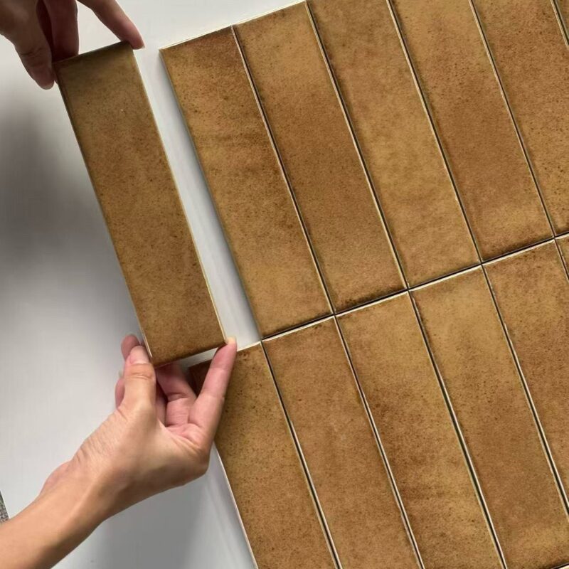 50x200mm brown Glazed 3D handcrafted tiles, high-end villa hotel living room, hall, kitchen, bathroom background wall tiles