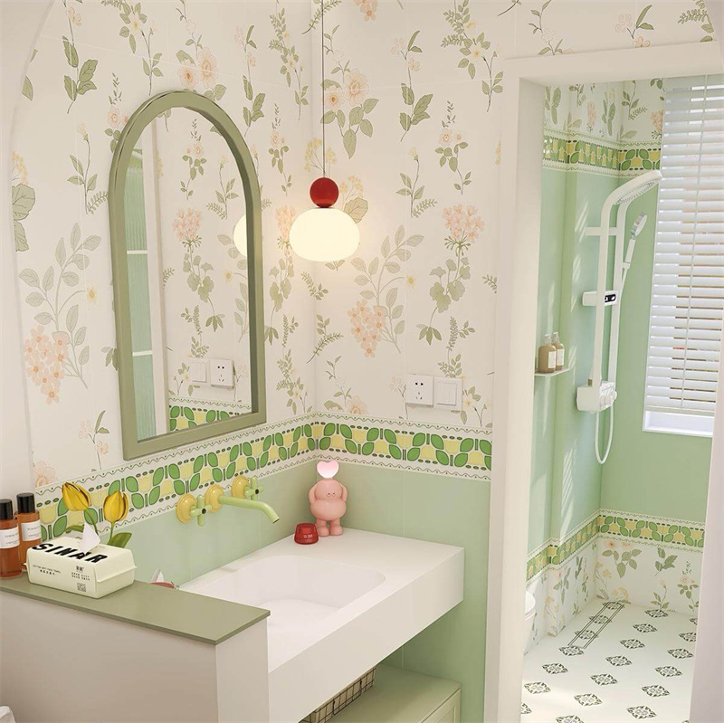 150x300mm Retro Green Yellow Pattern Porcelain Tile indoor Hotel villa Bathroom Kitchen Background Ceramic Wall Tiles Wholesale Price