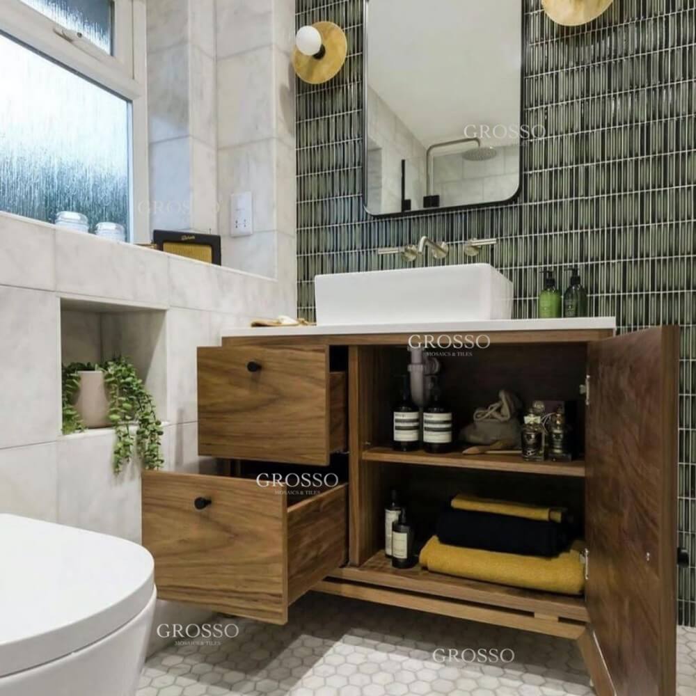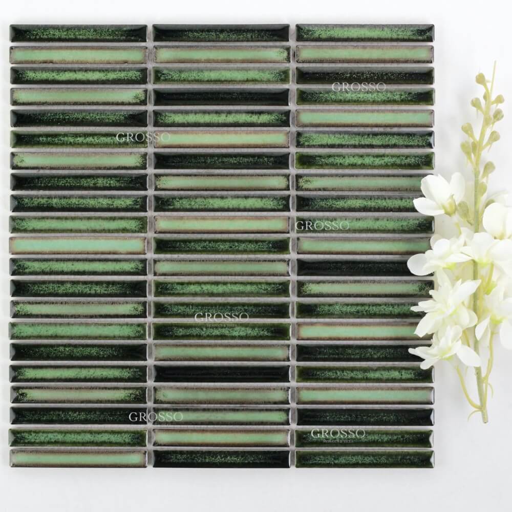 12x92mm Backsplash Green Metal Glazed Modern Wall Kitchen Strip Bathroom Mosaic Tile Price