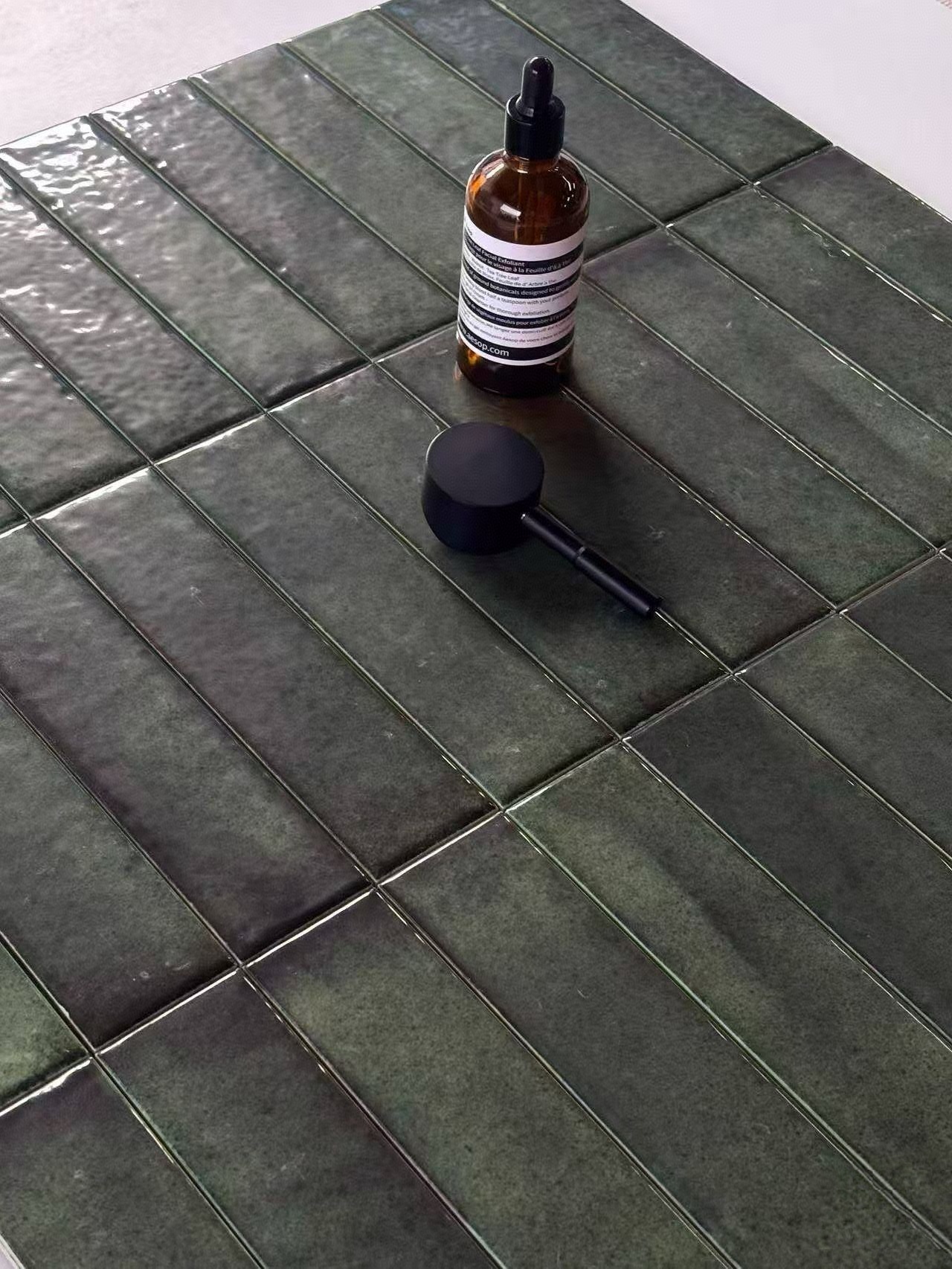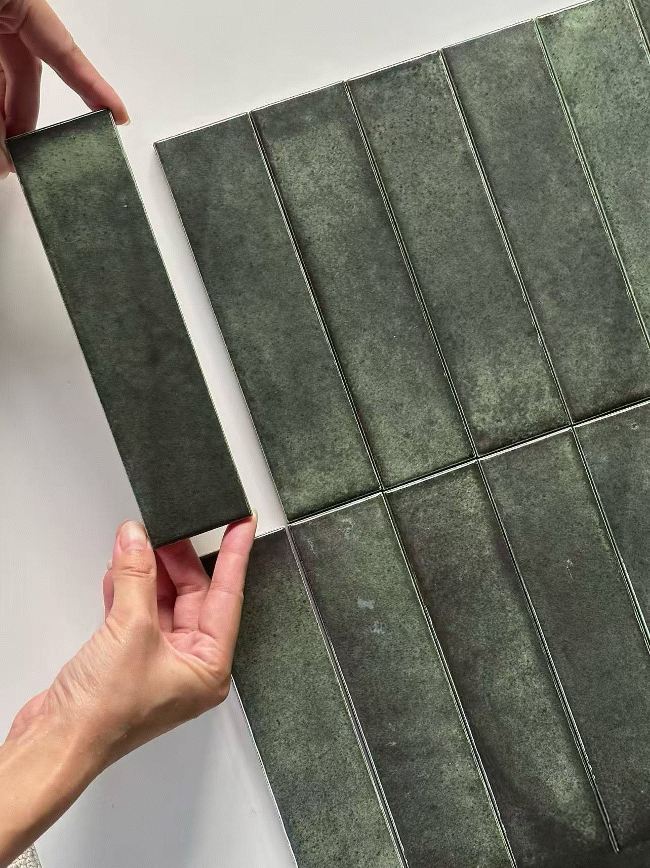 50x200mm Deep Green Glazed 3D handcrafted tiles, high-end villa hotel living room, hall, kitchen, bathroom background wall tiles