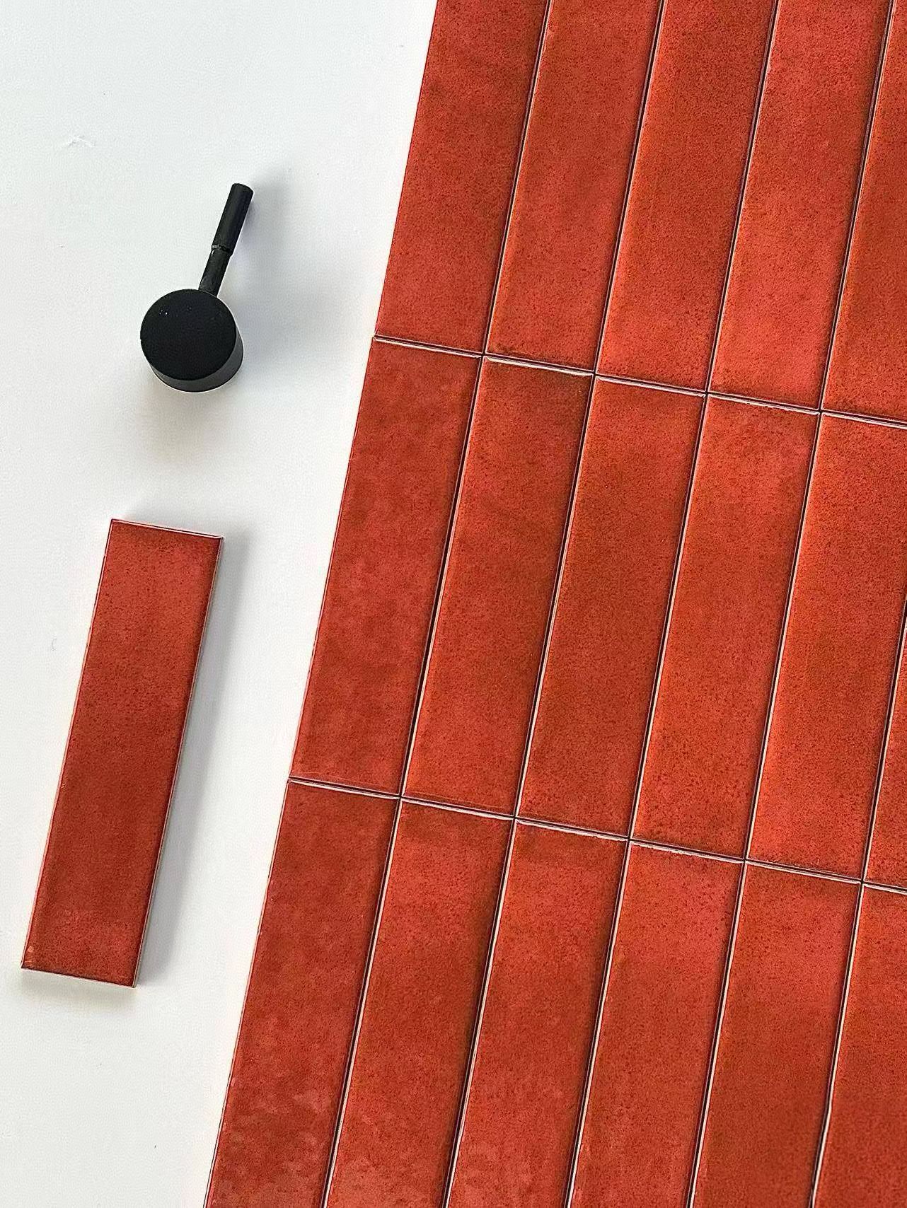 50x200mm Red Glazed 3D handcrafted tiles, high-end villa hotel living room, hall, kitchen, bathroom background wall tiles
