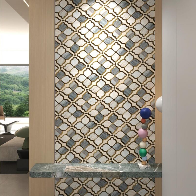 Grey flower-shaped pattern spliced natural marble Mosaic luxury villa hotel living room, hall, kitchen, bathroom background wall marble Mosaic