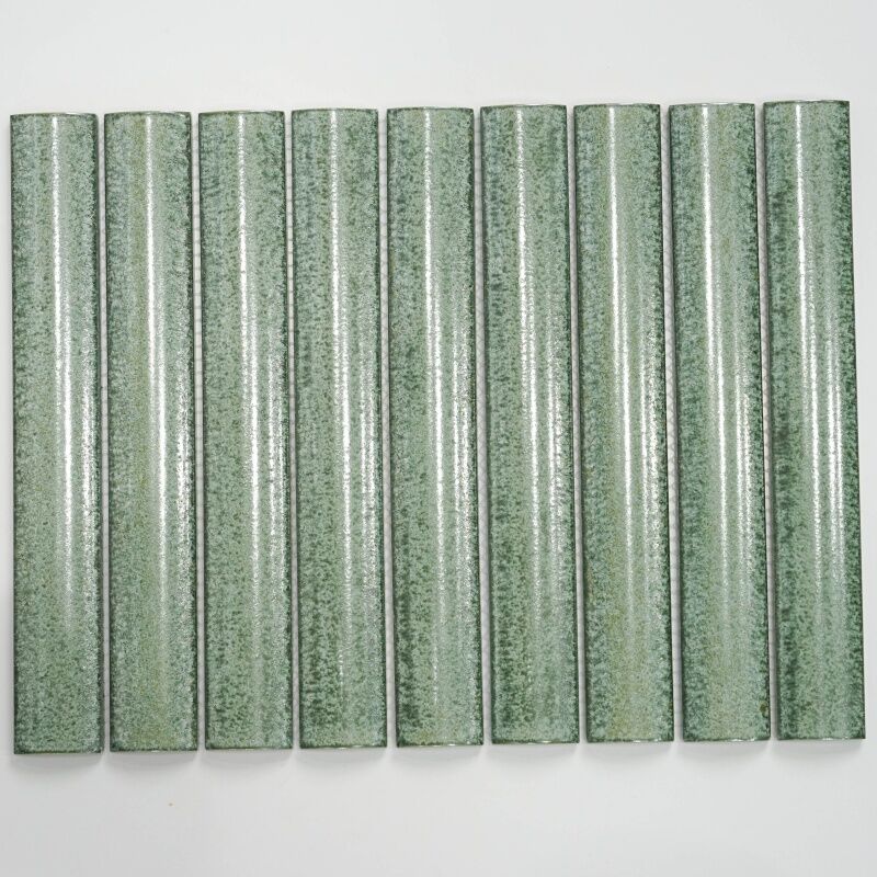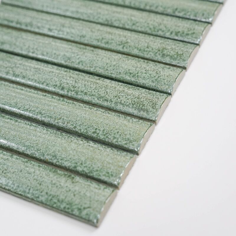 Long strip 3D Green Mosaic tile High-Precision Fambe indoor hotel villa bathroom background wall tiles Wholesale factory