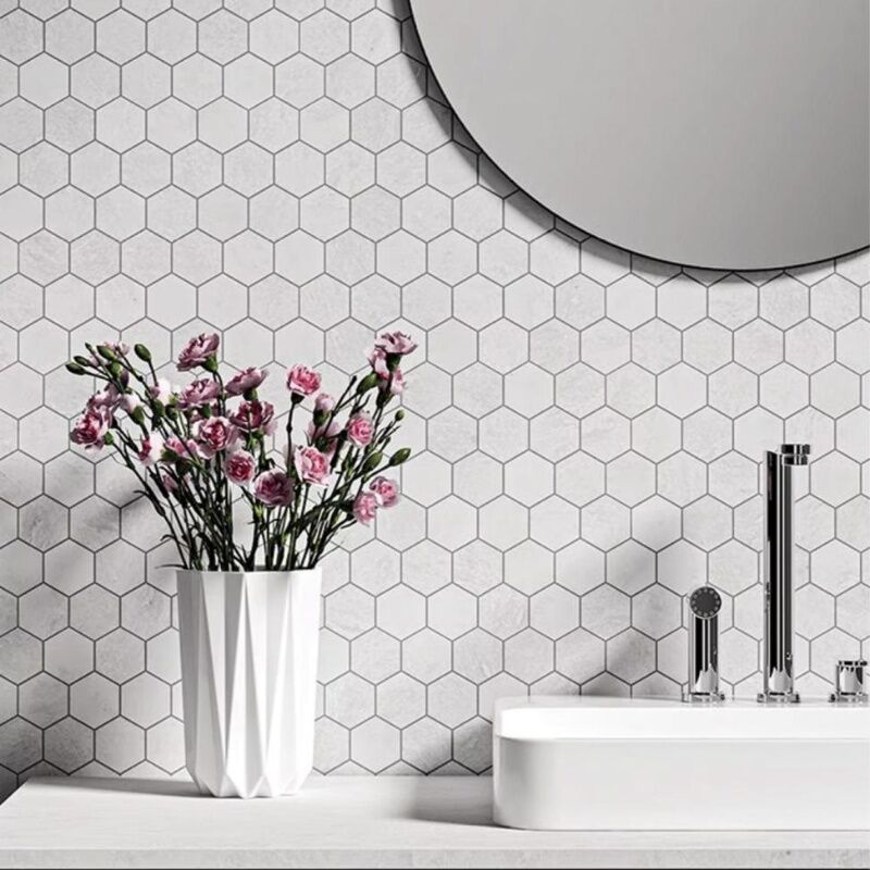 1、These 2″ hexagon porcelain tiles are designed to look like natural fine marble.