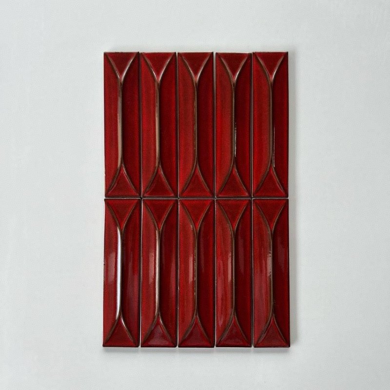 Red Tiles for Villa Exterior Interior Wall Decoration Kitchen and Bathroom Background 3D Glazed Tiles for Living Room